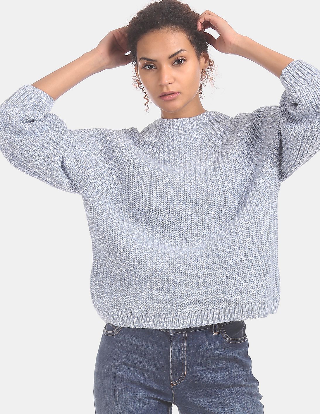 Blue Mock Neck Crop Sweater