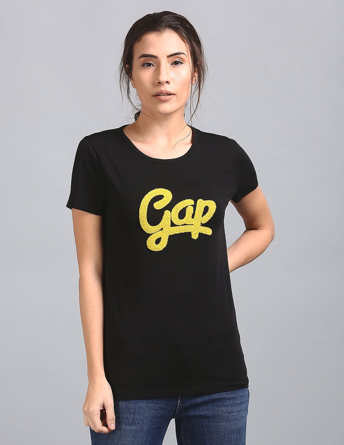 Women Black Logo Tee With Dense Pile Embroidery Logo