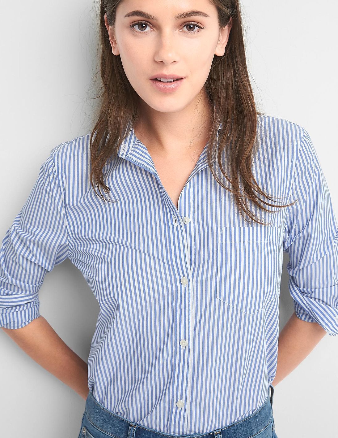 Women Blue Stripe Poplin Fitted Boyfriend Shirt