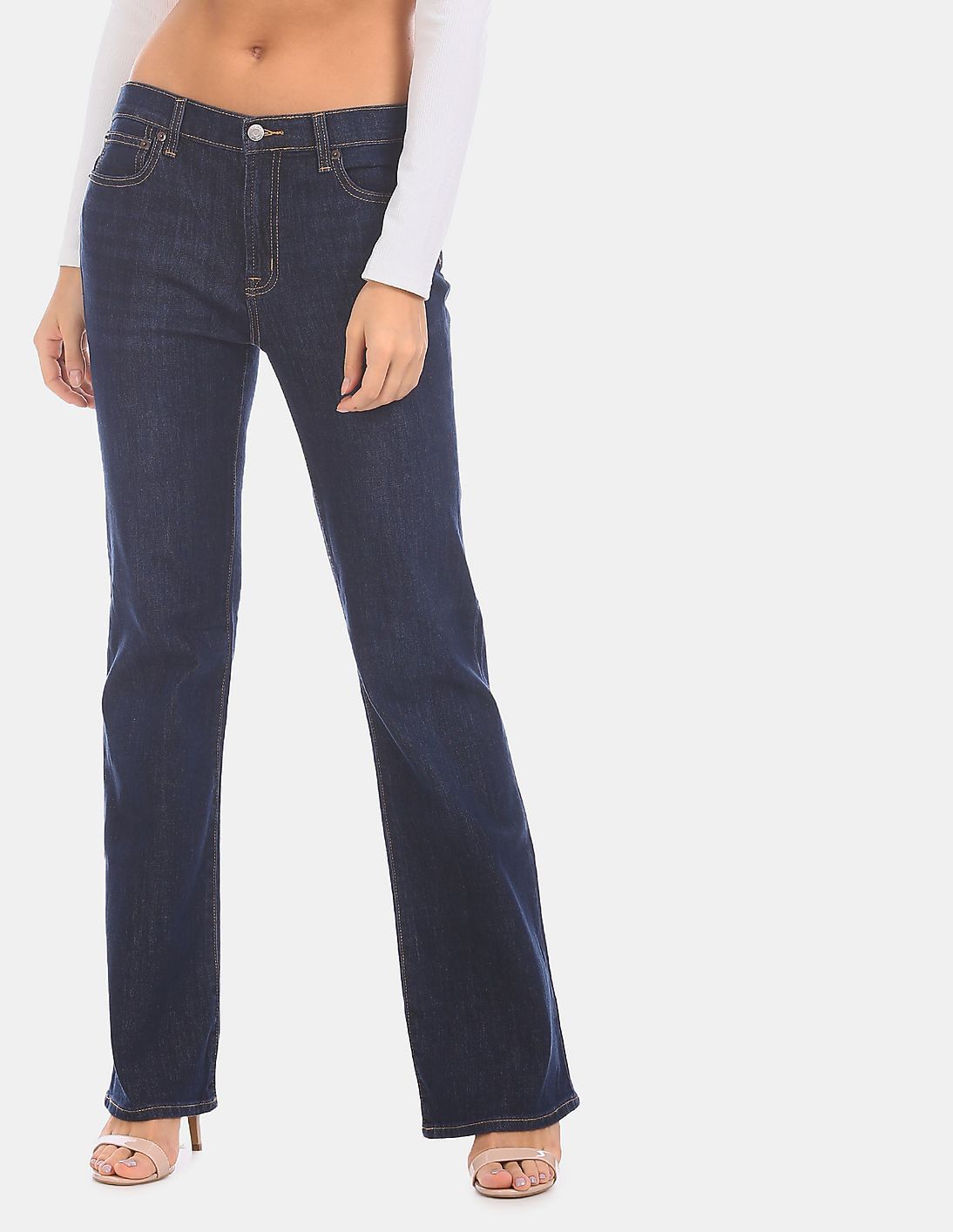 Women Dark Indigo Rinsed Flared Jeans