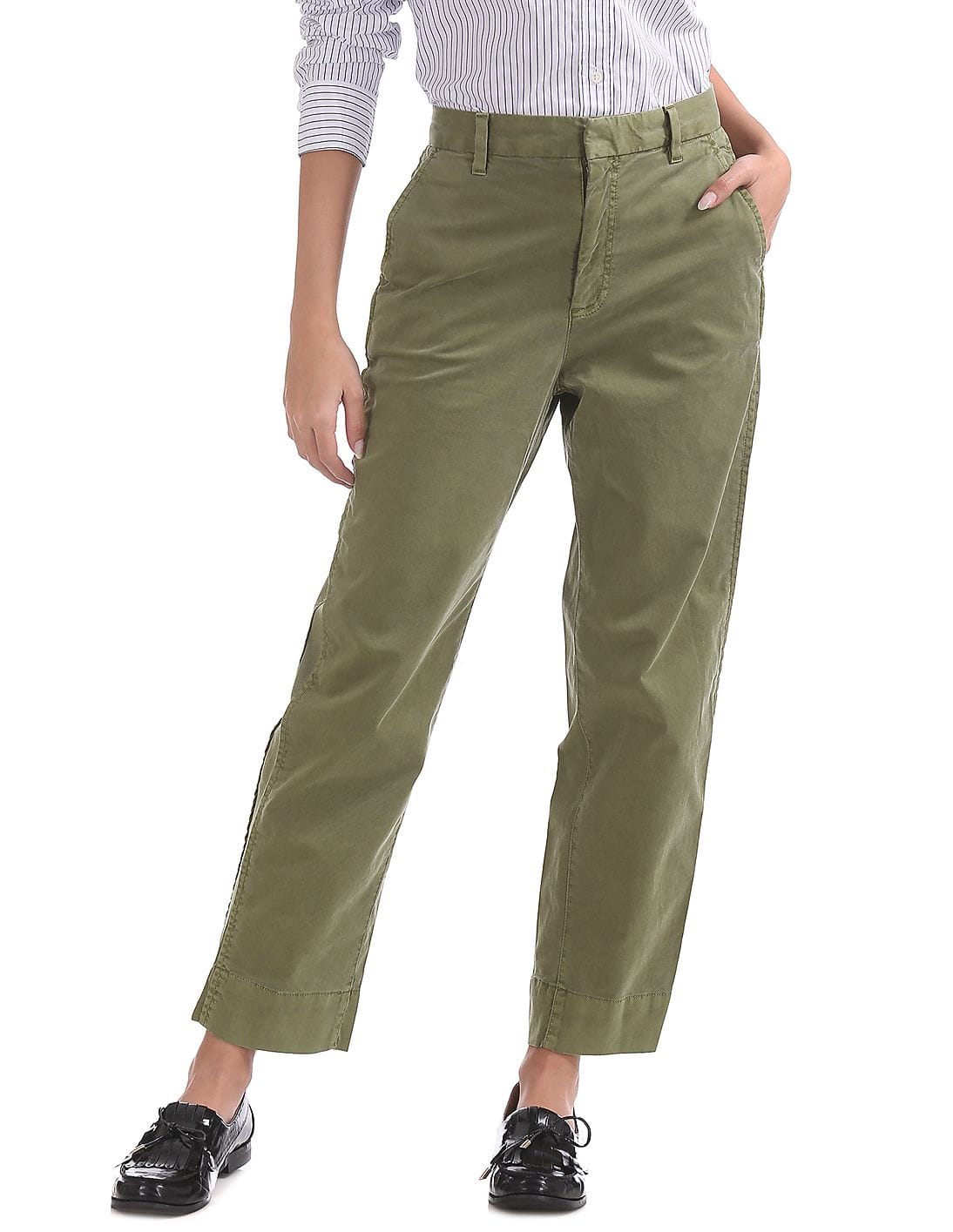 Women Green High Rise Side-Panel Girlfriend Chinos
