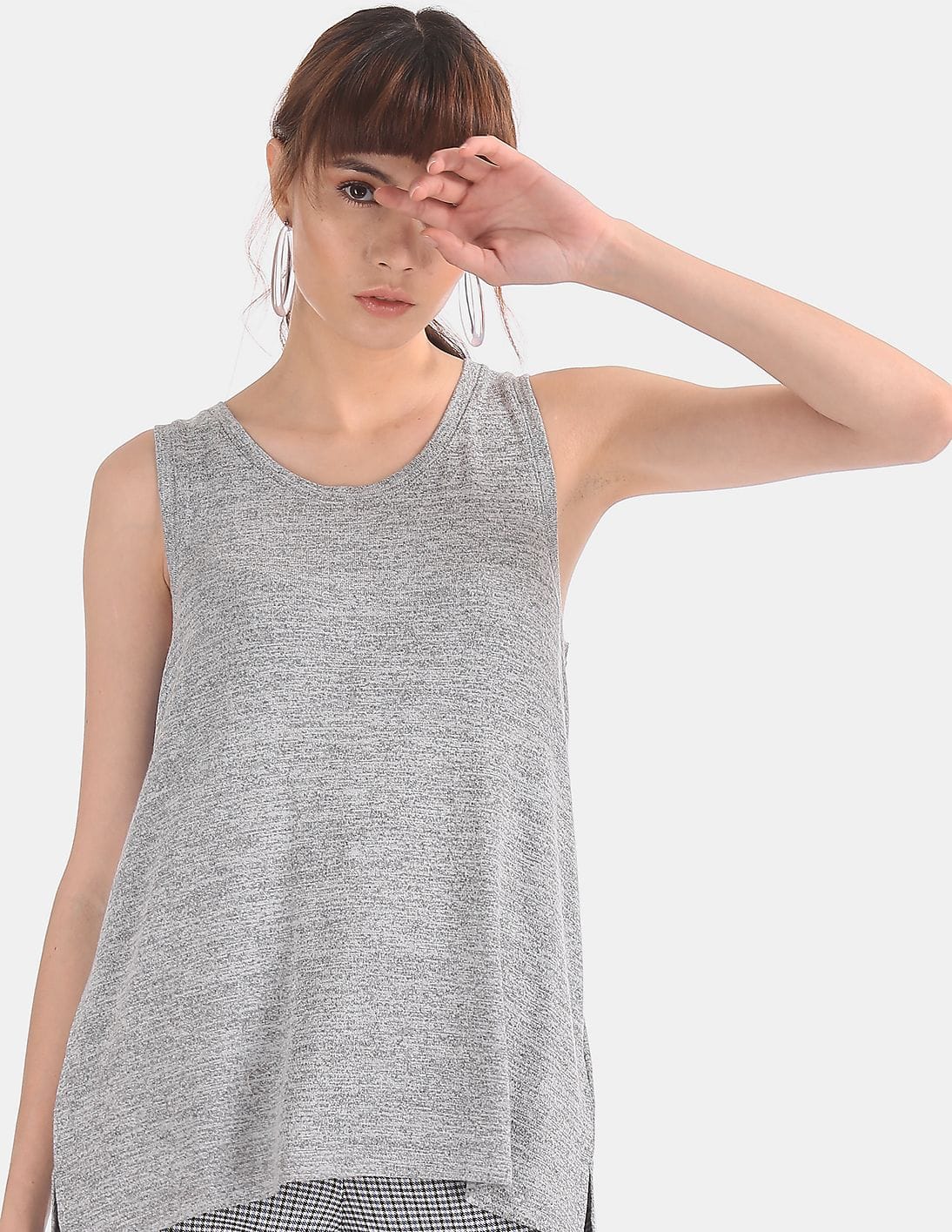 Women Grey Sleeveless Softspun Swing Top