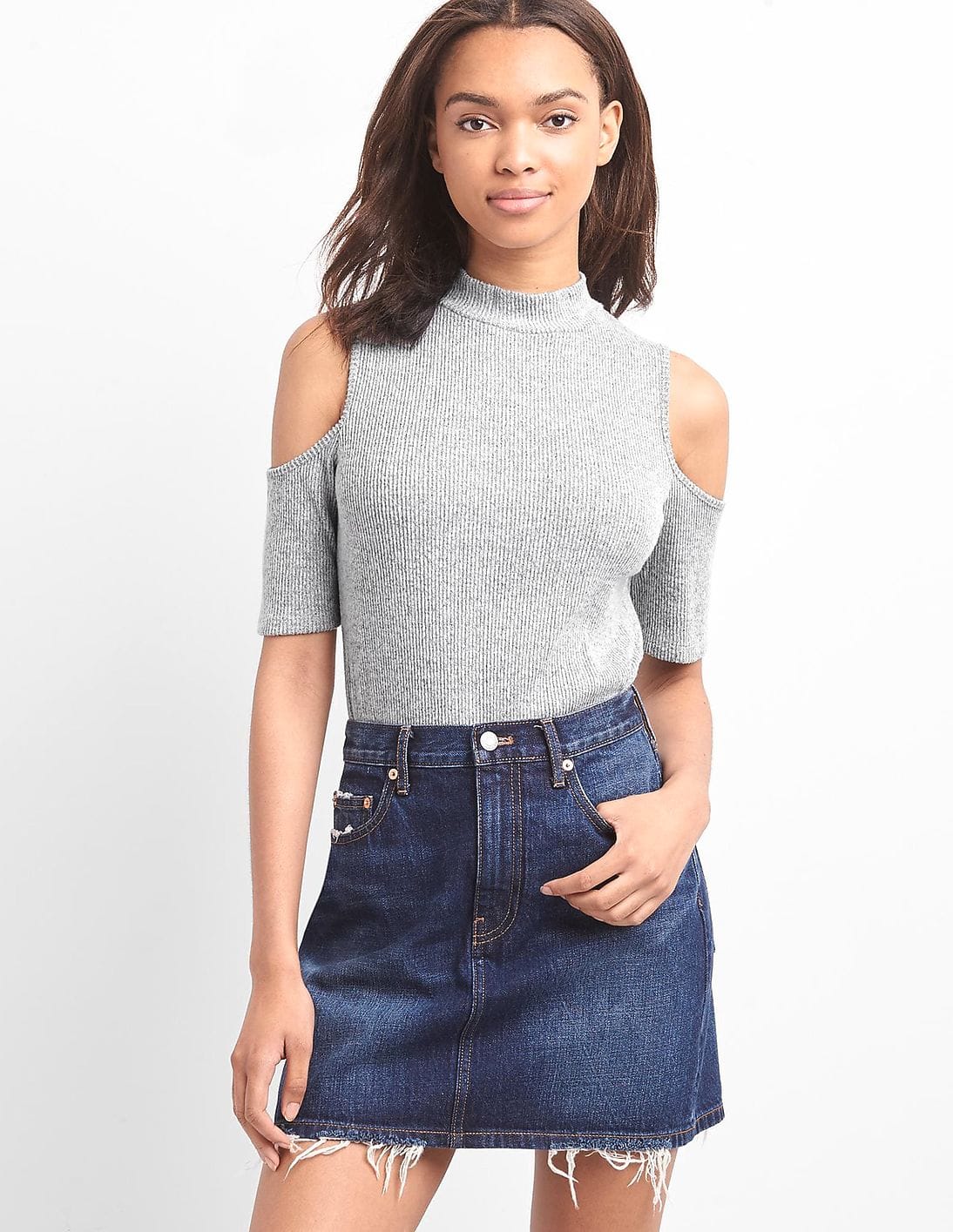 Women Grey Softspun Ribbed Cold-Shoulder Top