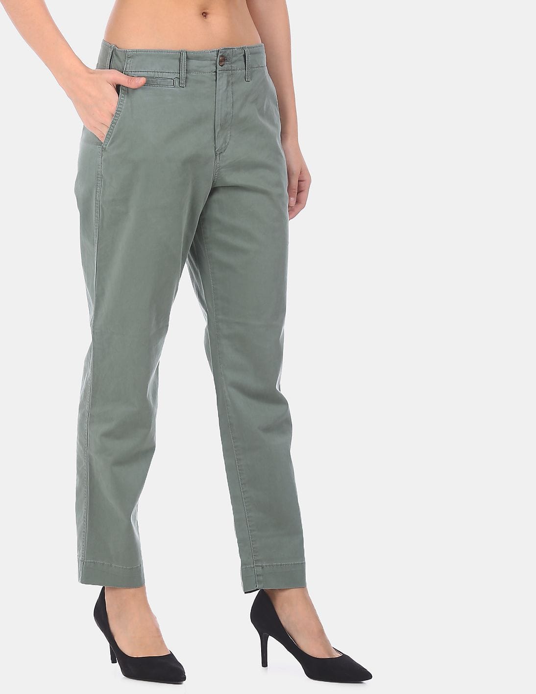 Women Olive High Rise Straight Pants