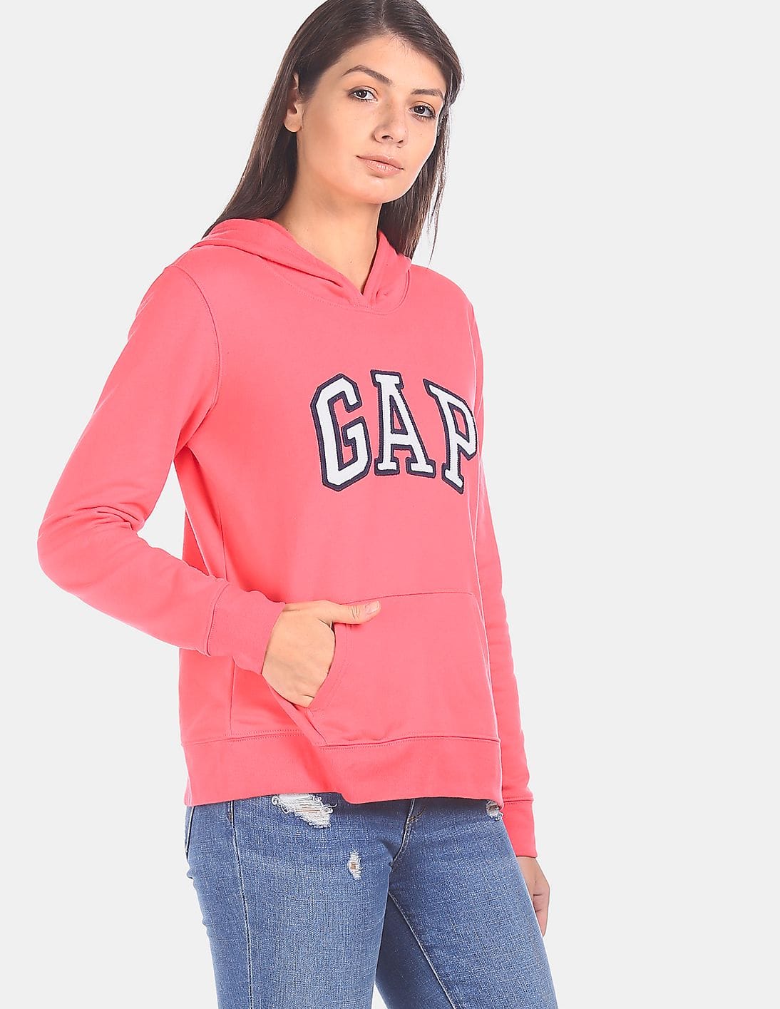 Women Pink Hooded Appliqued Sweatshirt