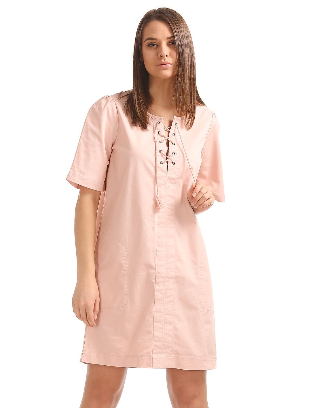 Our customers feel that Gap dresses are sized larger than other brands. If you wear M, buy S for this brand.