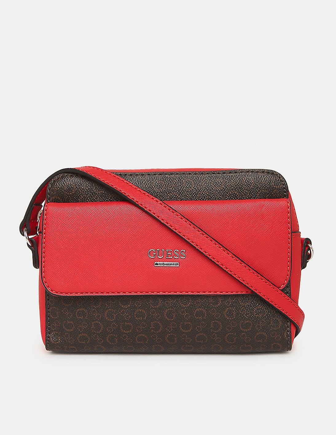 Women Brown And Red Printed Romwell Top Zip Sling Bag