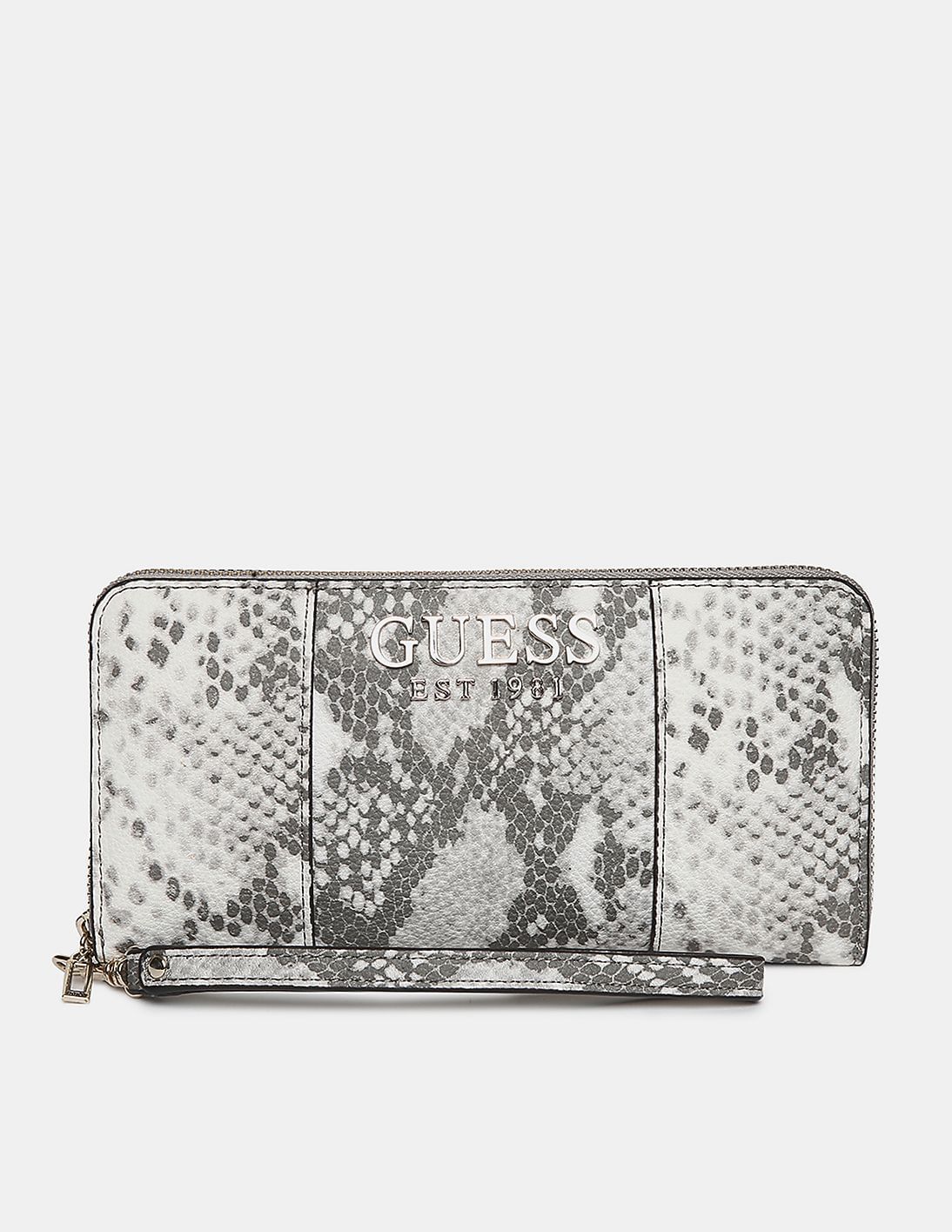 Women Grey And White Snake Pattern Holly SLG Large Zip Around Wristlet