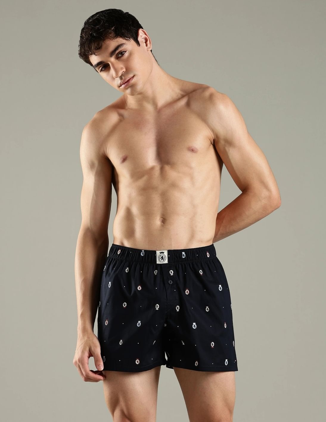 Black Printed Mid Rise Boxer