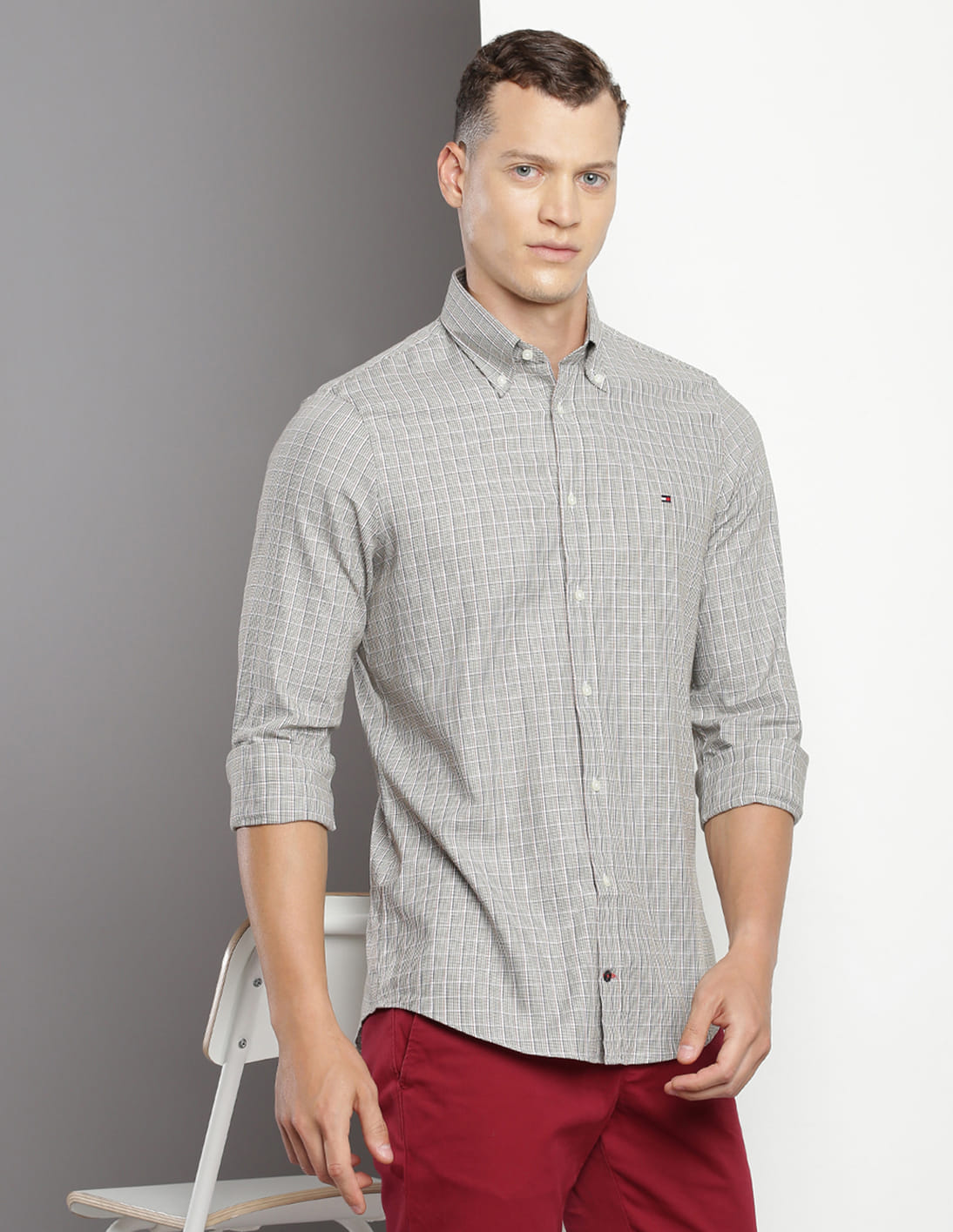Button Down Collar Plaid Check Shirt