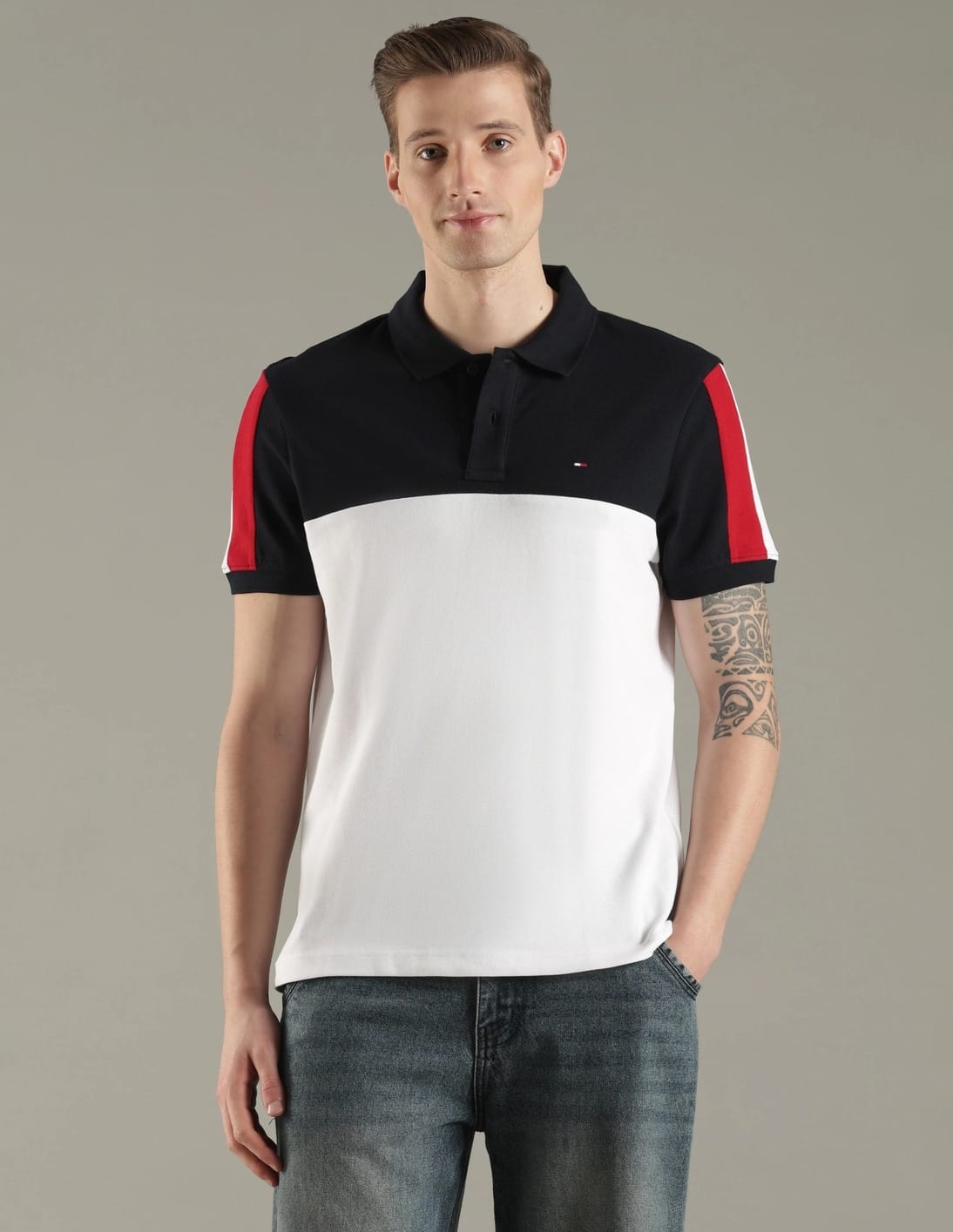 Colorblocked Regular Fit Cotton Polo T-Shirt