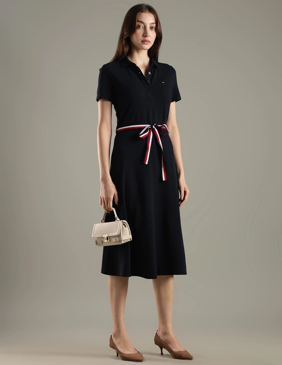 Cotton Polo Collar Midi Dress