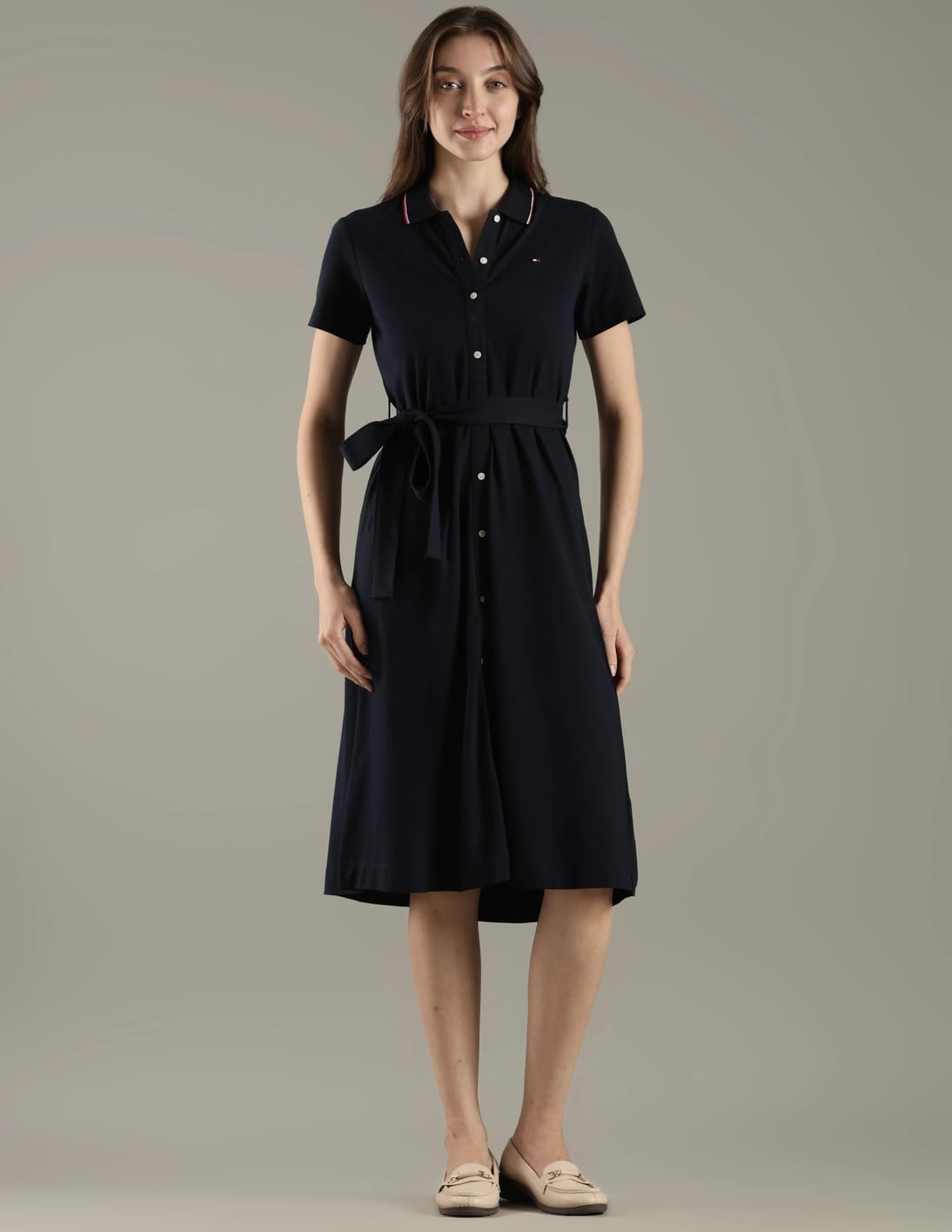 Cotton Polo Collar Shirt Dress