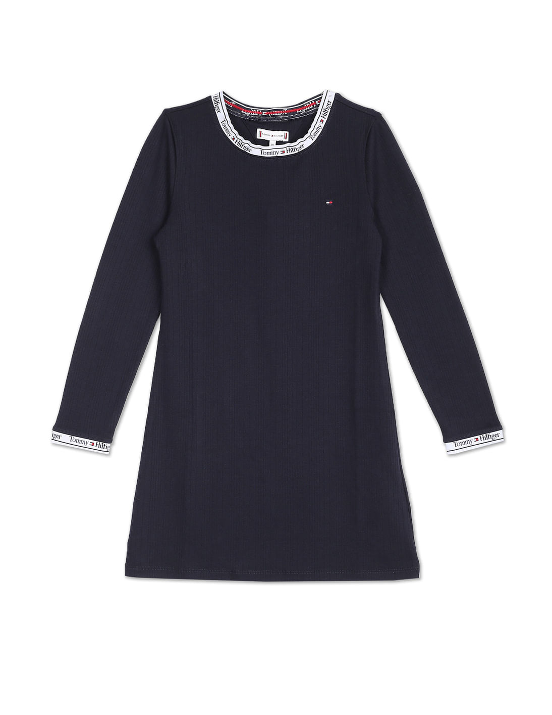 Brand Taped Rib Knit Solid Dress