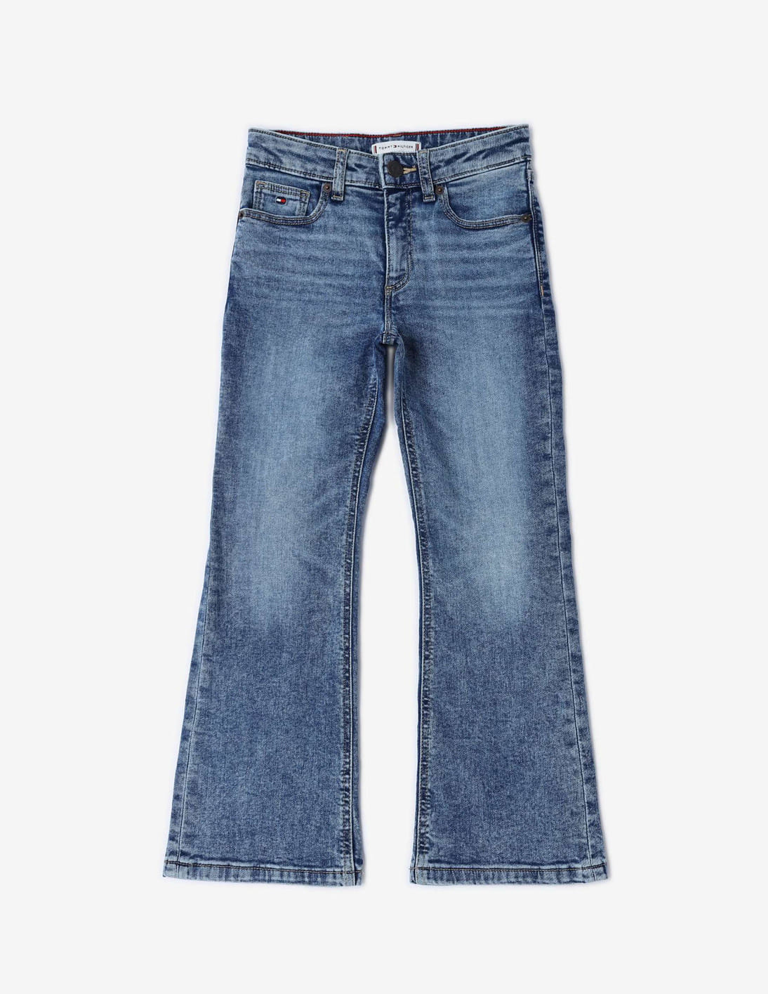 Girls Mid-Wash Skinny Fit Mid Rise Jeans