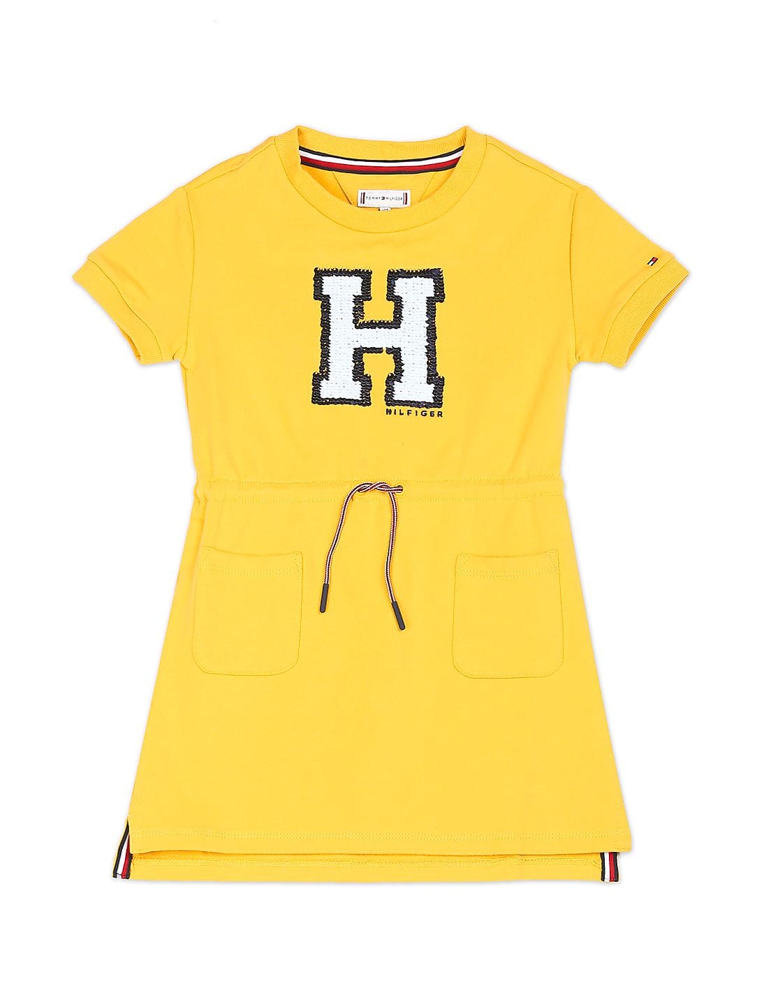 Girls Yellow Flippy Sequin Logo T-Shirt Dress