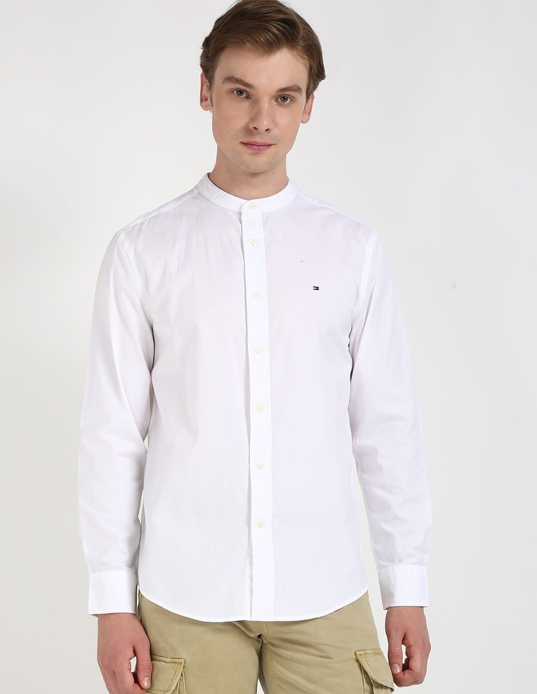 Logo Solid Regular-Fit Poplin Woven Shirt