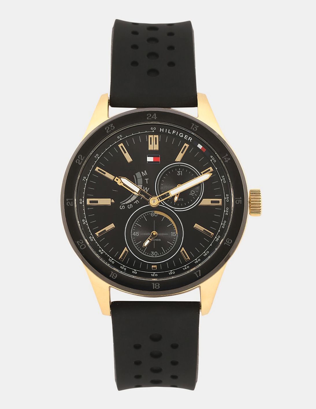 Men Black Perforated Silicone Strap Watch