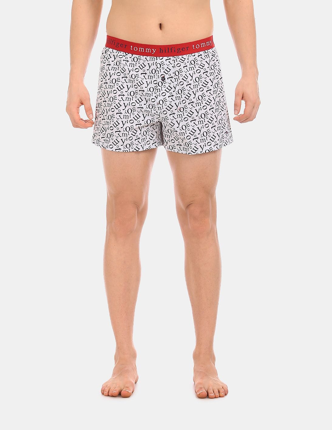 Men White Contrast Waist Brand Print Boxers
