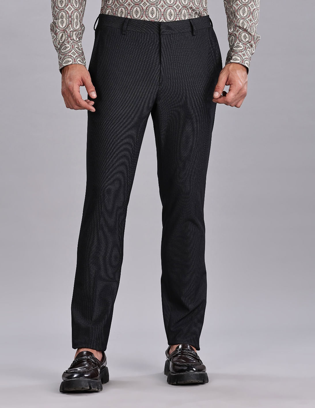 Regular-Fit Checked Mid Rise Trousers