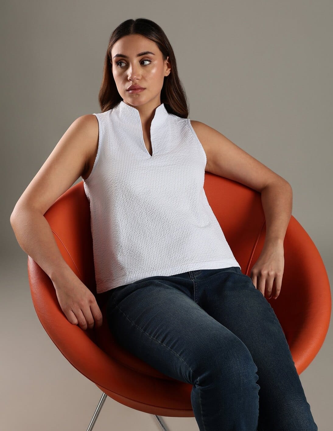 Regular Fit Cotton Mandarin Collar Top