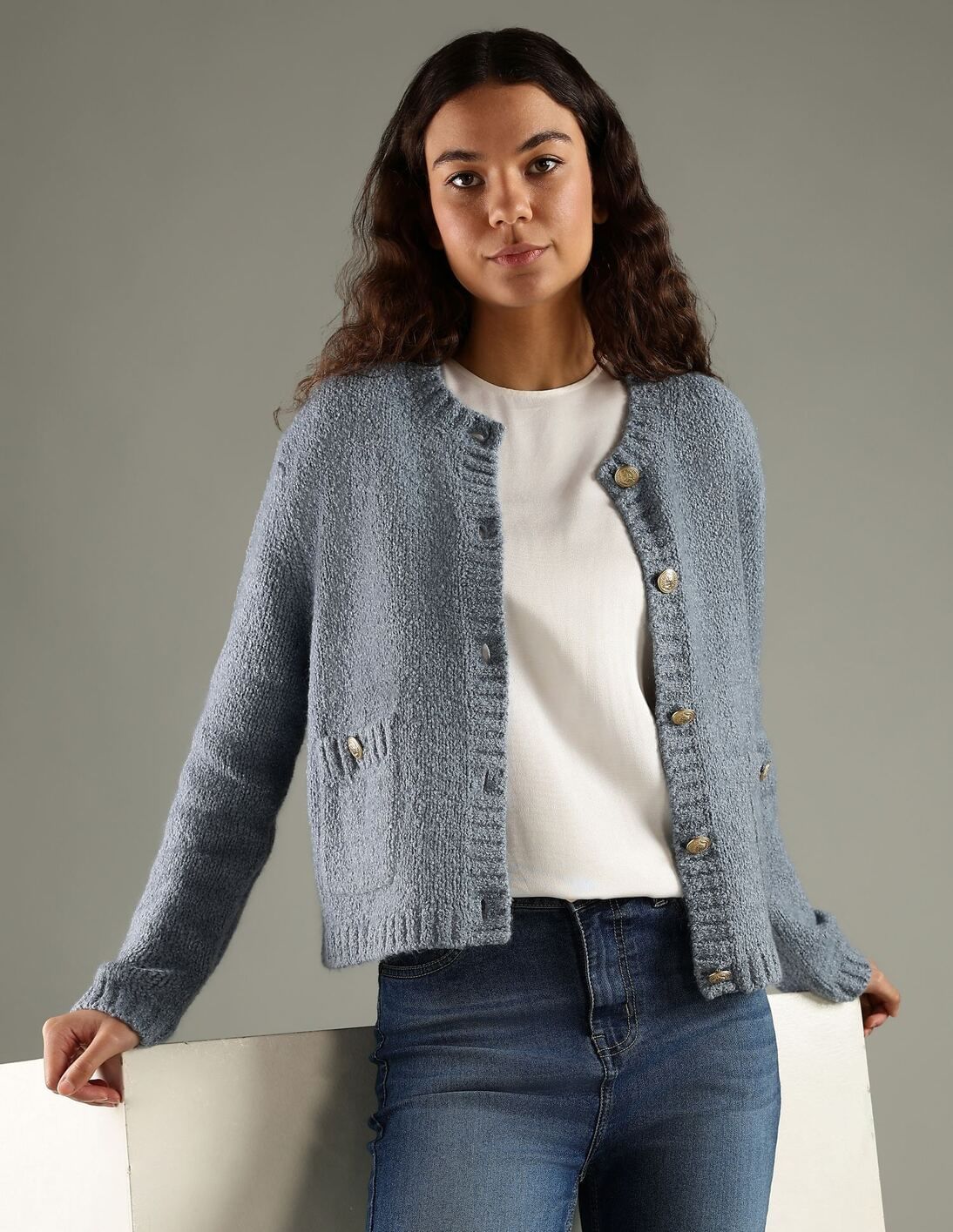Regular Fit Cotton Round Neck Cardigan