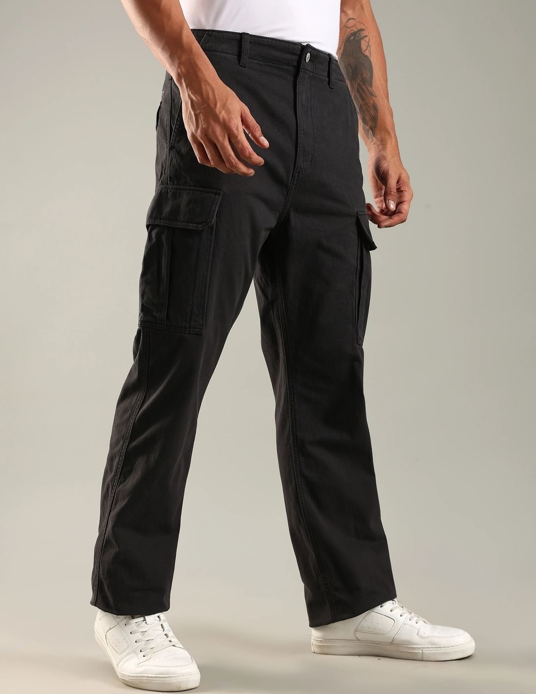 Regular Fit Solid Mid Rise Cargo