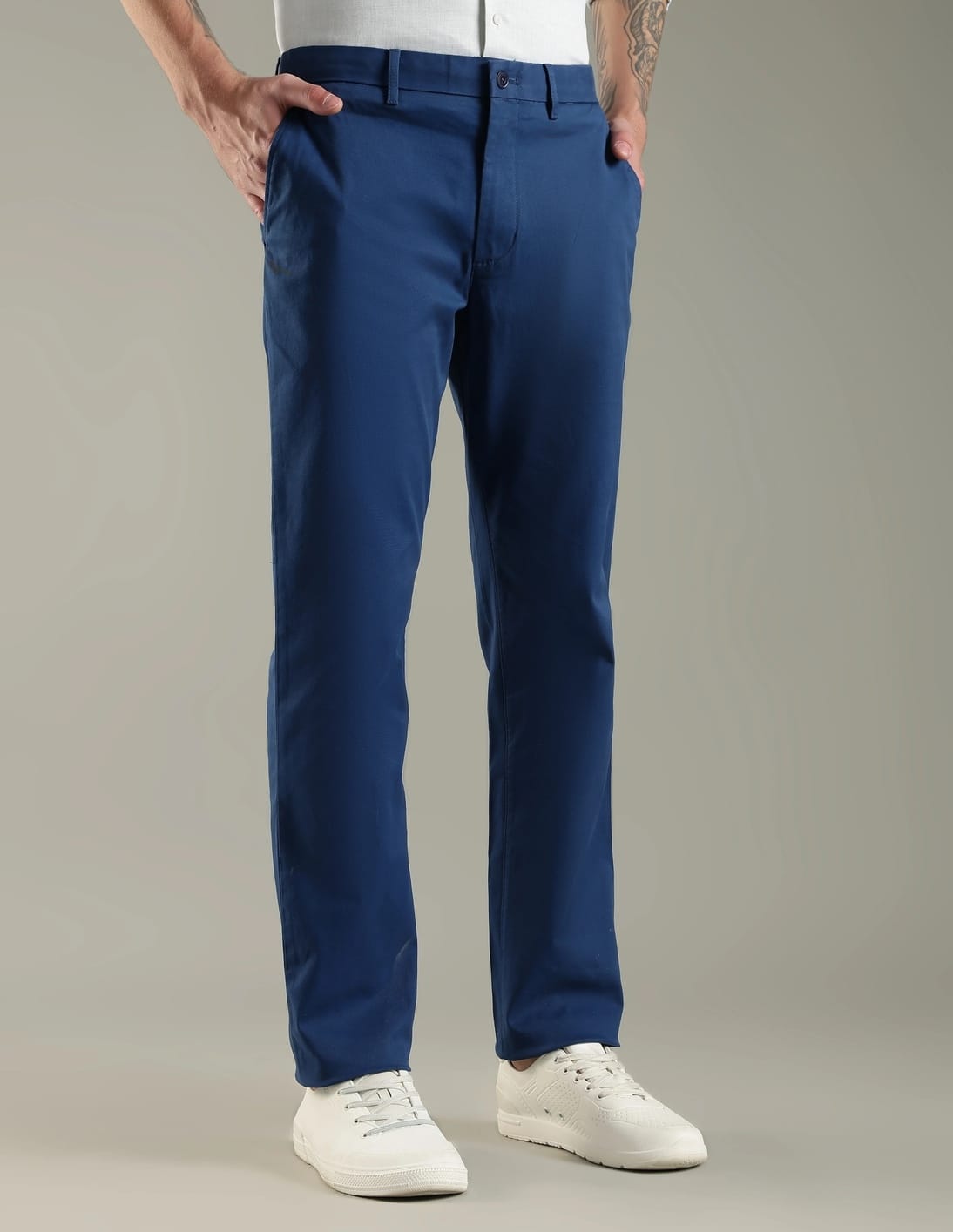 Regular Fit Solid Mid Rise Trouser