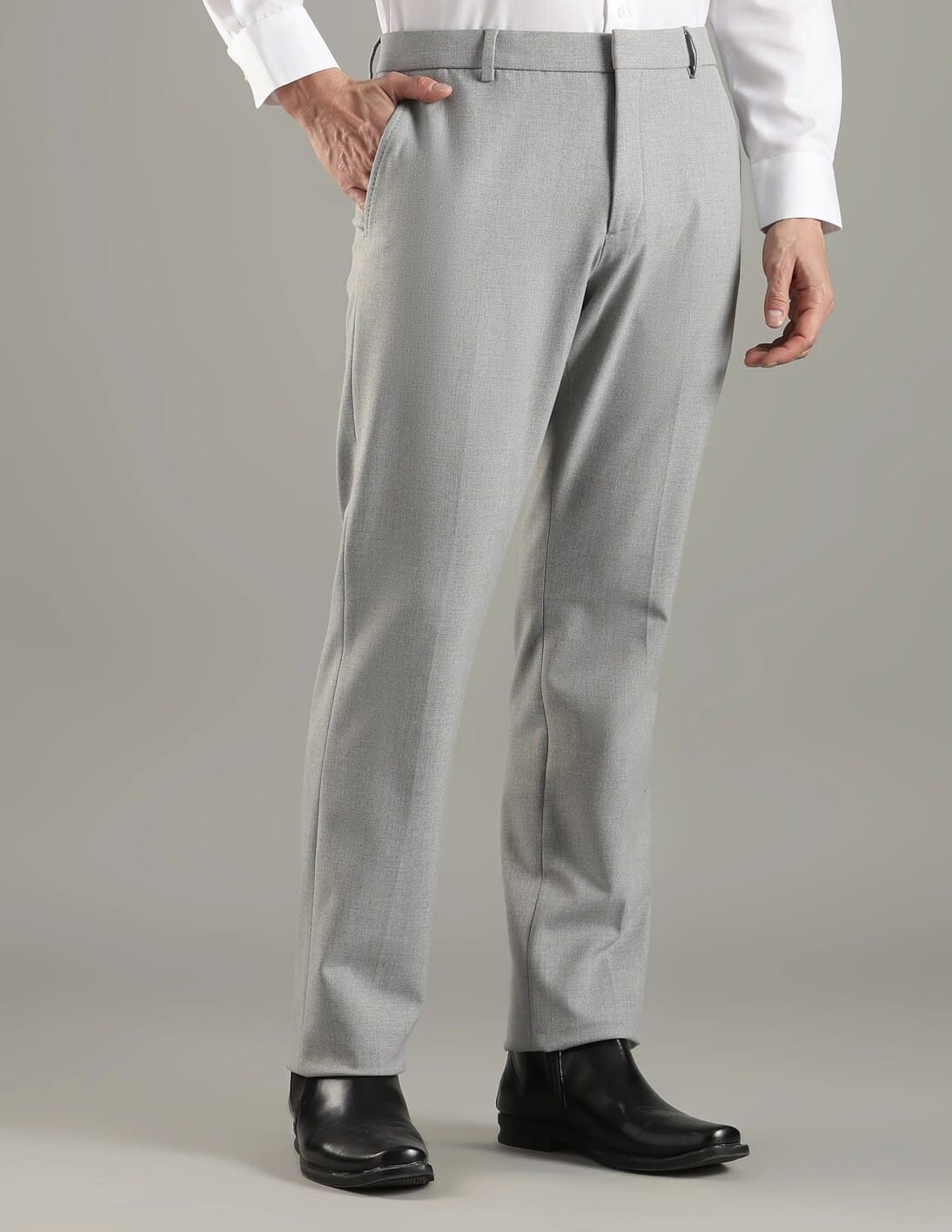 Regular Fit Solid Mid Rise Trouser