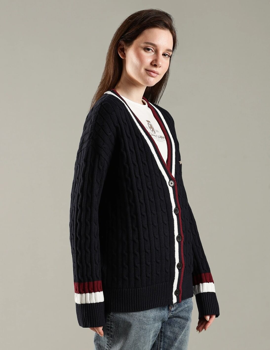 Relaxed Fit Cotton V-Neck Cardigan