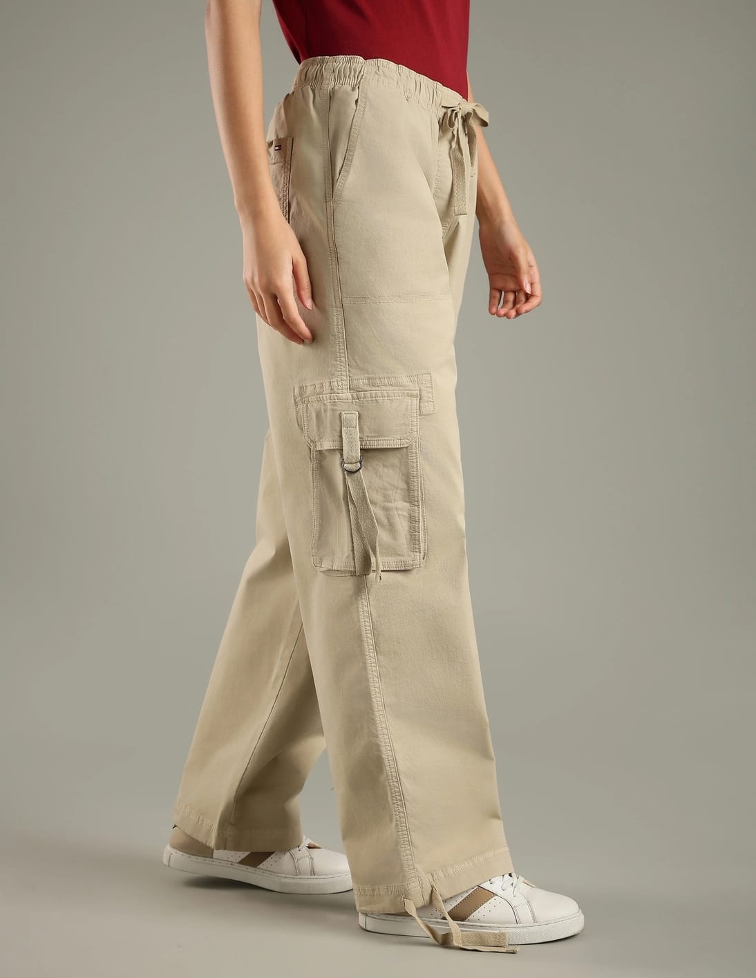 Relaxed Fit Solid Mid Rise Cargo