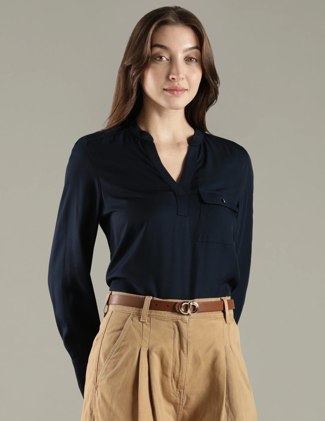 Relaxed Fit Viscose Mandarin Collar Top
