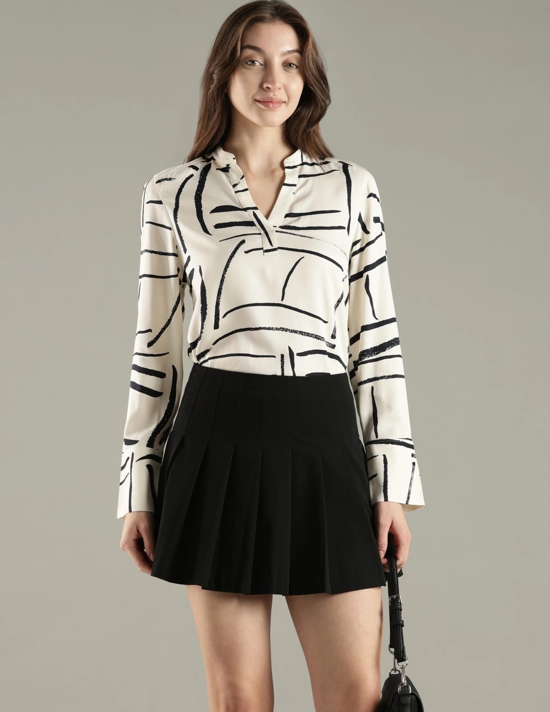 Relaxed Fit Viscose Mandarin Collar Top