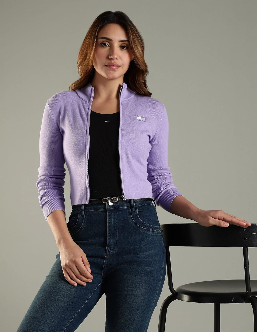 Slim Fit Cotton Mock Neck Front-Open Sweater