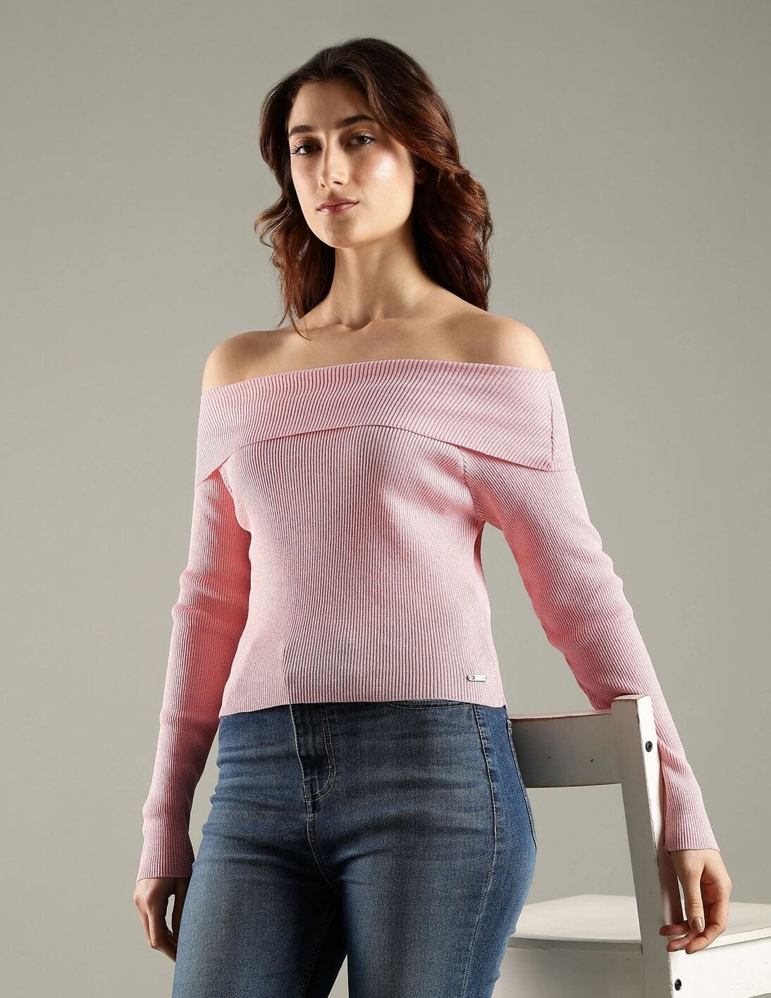 Slim Fit Viscose Off-Shoulder Neck Sweater