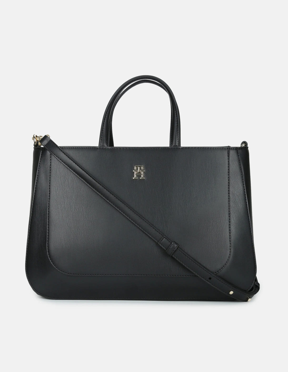 Solid Black Polyurethane Handbag