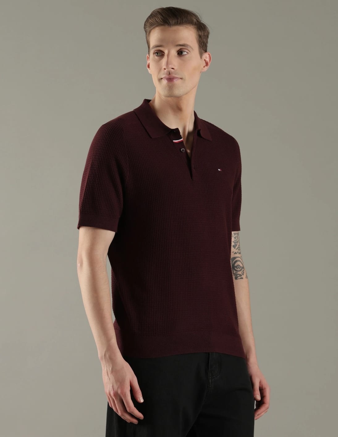 Texture Regular Fit Cotton Polo T-Shirt