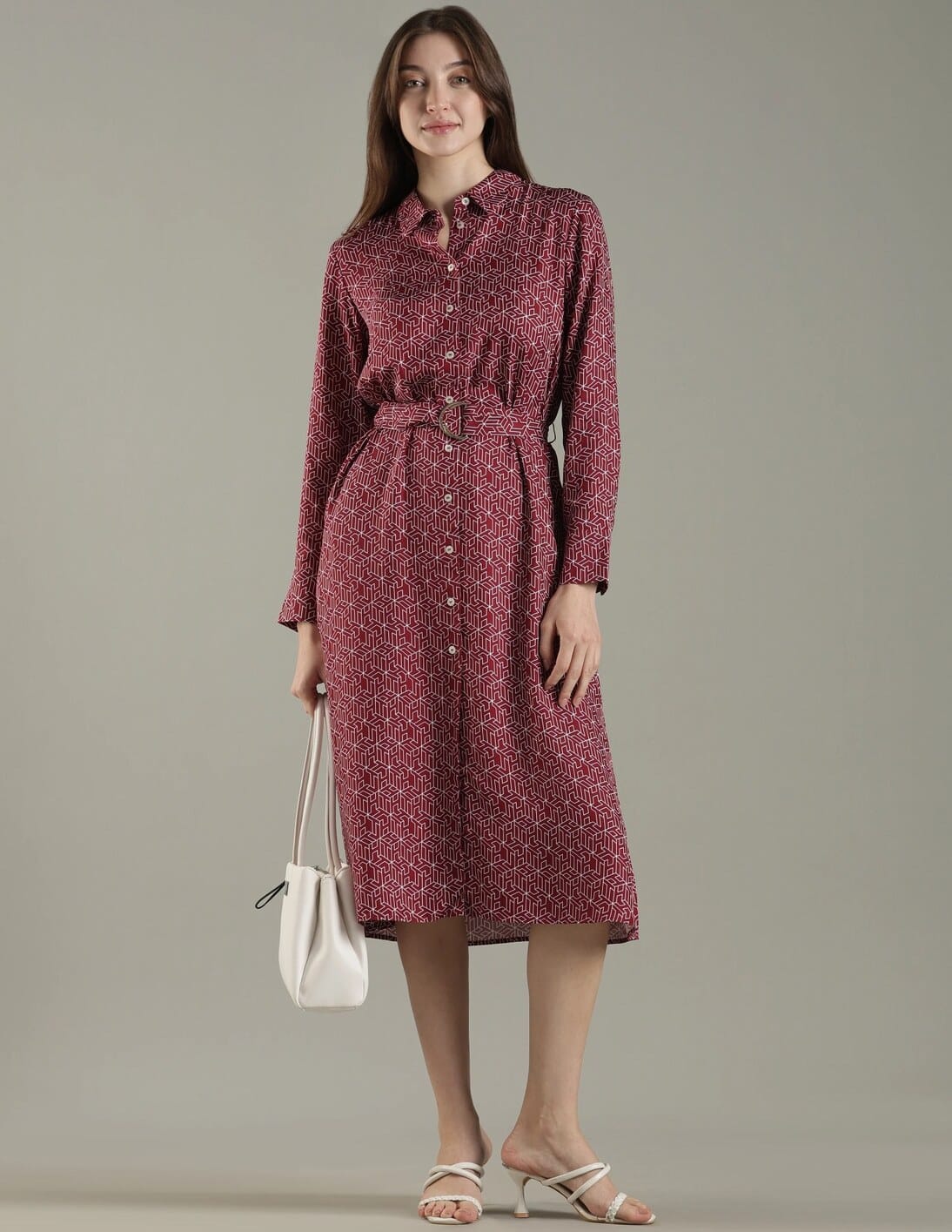 Viscose Spread Collar Shirt Dress
