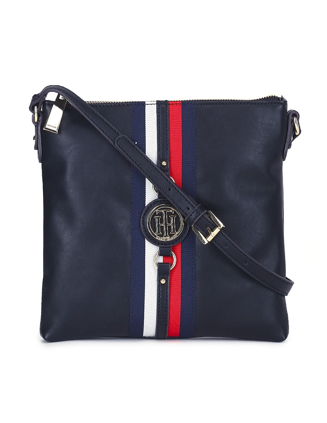 Women Navy Adjustable Strap Metallic Logo Xbody Bag