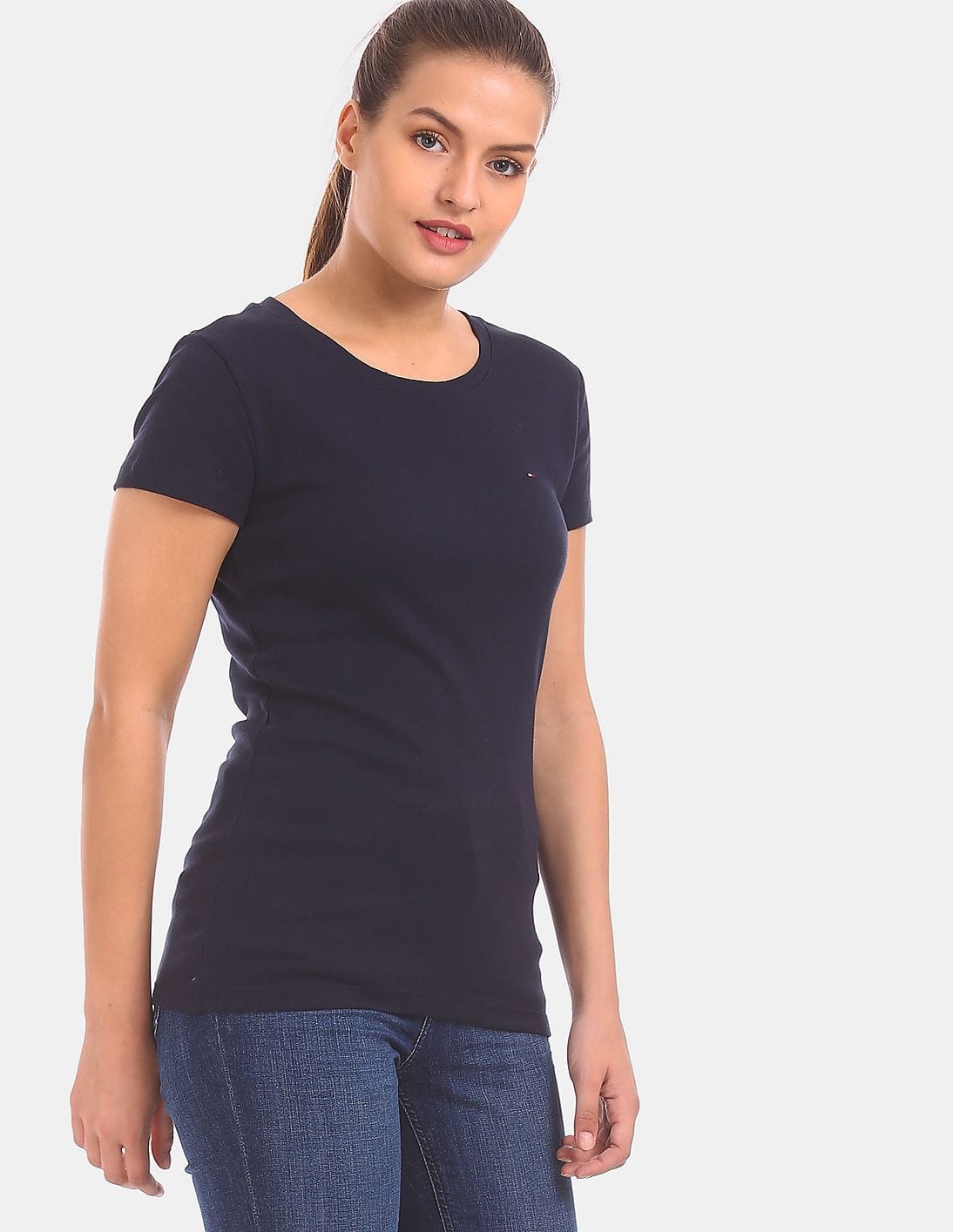 Women Blue Short Sleeve Fave Core Crew Neck T-Shirt