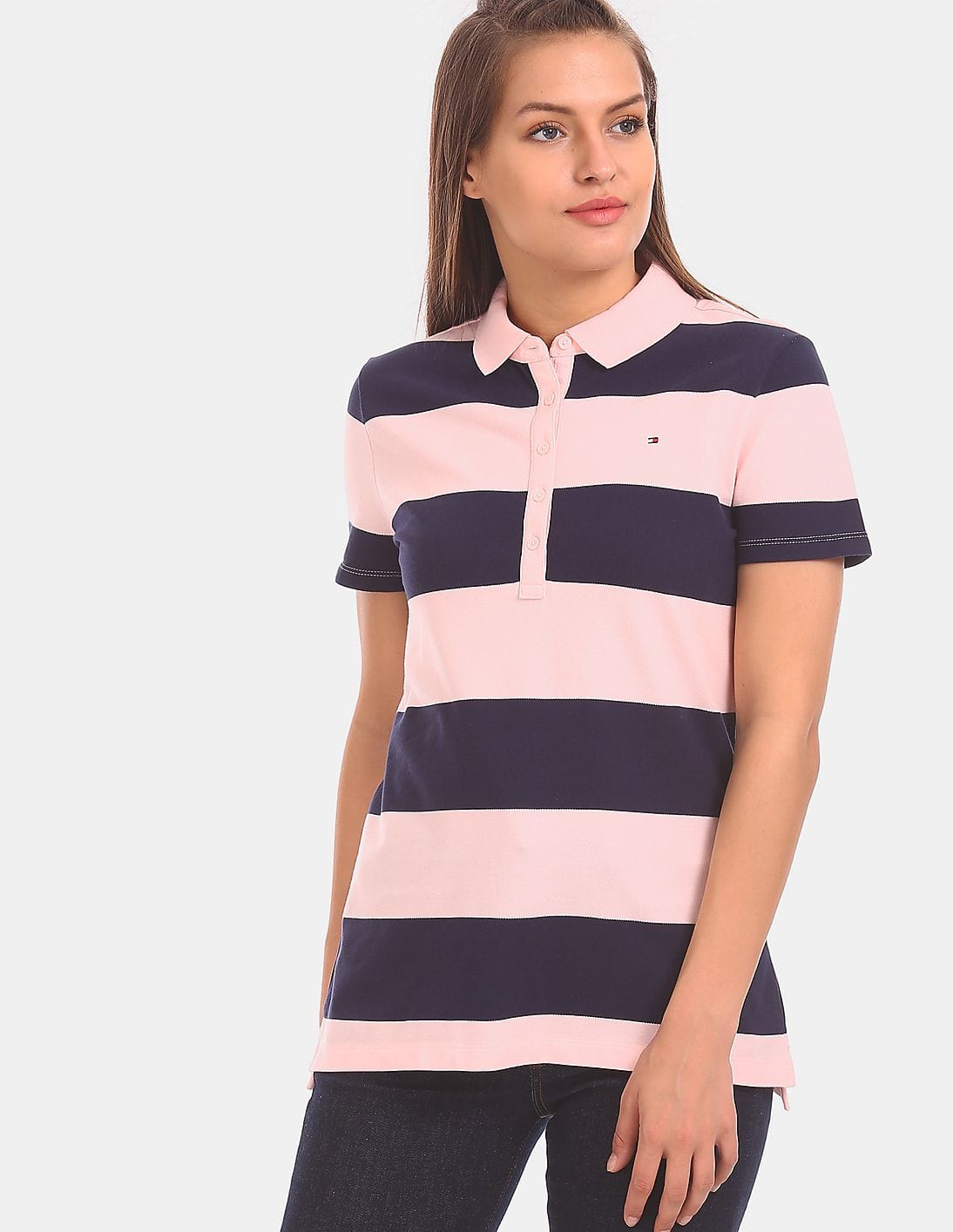 Women Pink Heritage Birch Short Sleeve Rugby Stripe Polo Shirt