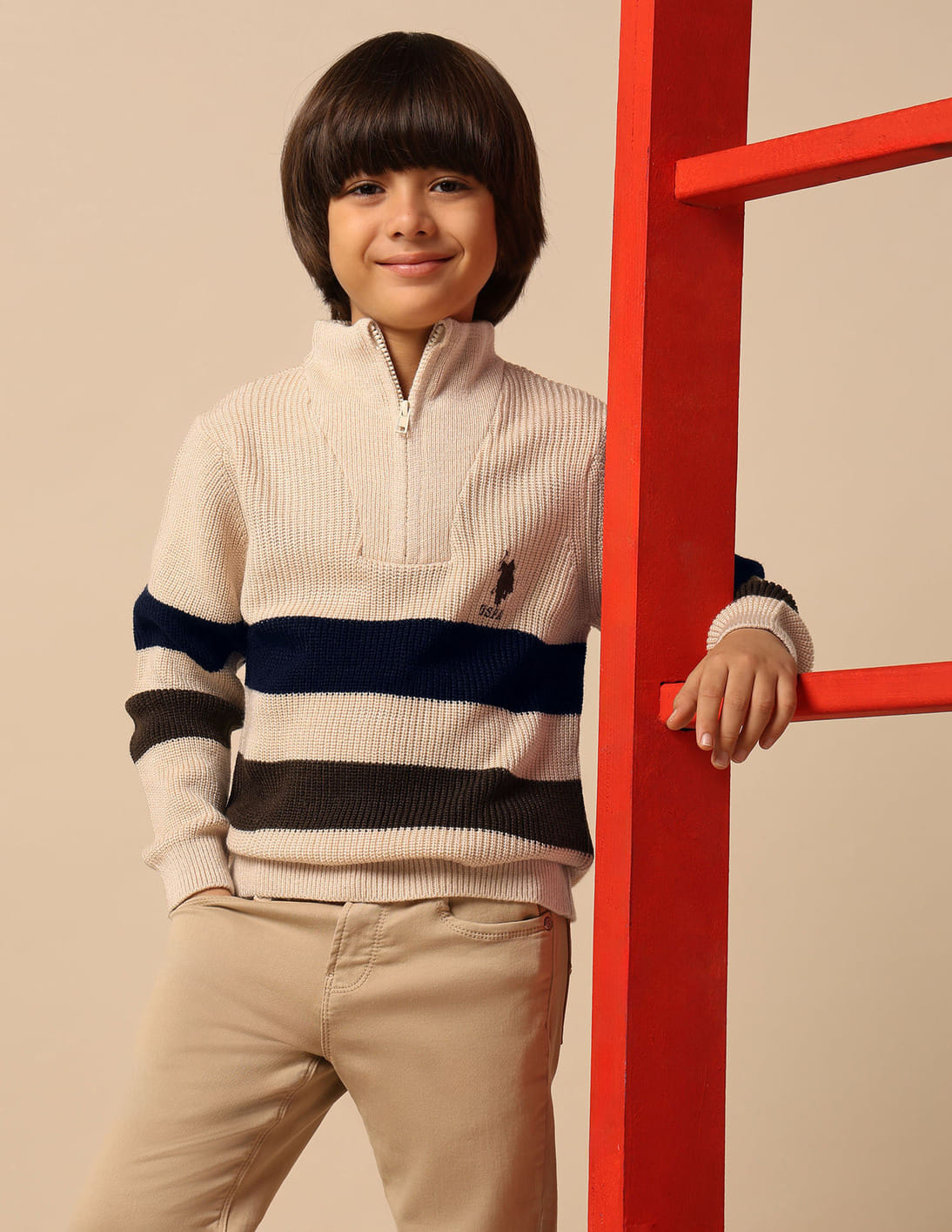 Boys Horizontal Striped Regular Fit Sweater