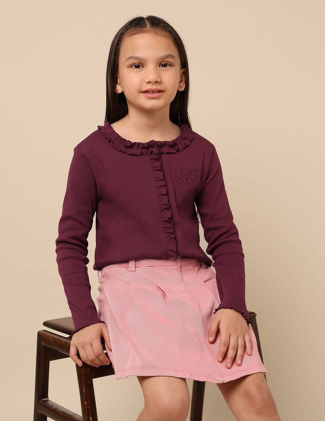 Girls Textured Slim Fit Top
