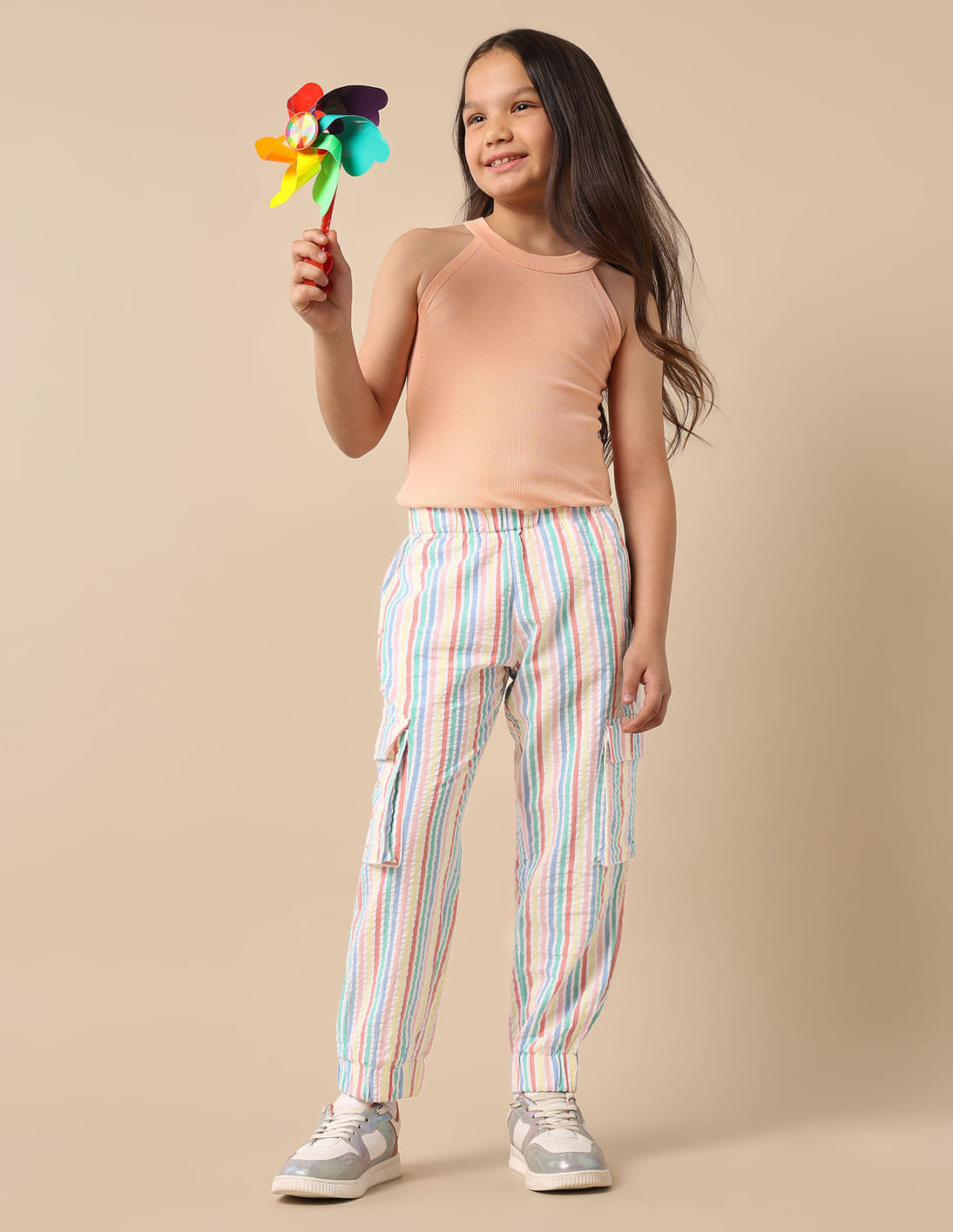 Girls Vertical Stripe Cotton Track Pants