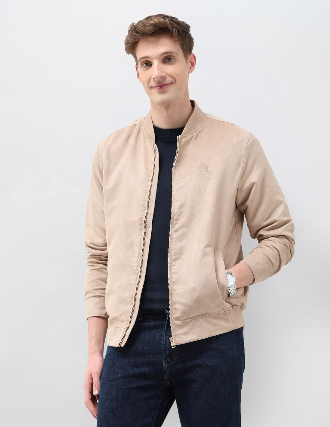 Solid Regular Fit Bomber Jacket
